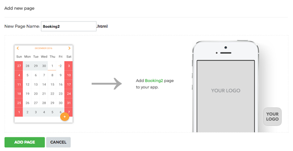 1. For adding the new native Booking System page to your app access its Dashboard. Go to Edit Pages menu then click the "+" (Add New Page) button OR Click Here.
