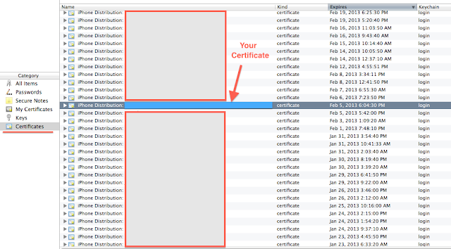 2. Find your iPhone Distribution Certificate in Keychain, right click on it and choose Export option in the appeared menu ( or use ⌘ + SHIFT + E keyboard shortcut to export your key).