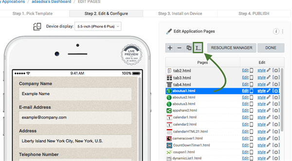 Step 2. Name the page type as tab1.html